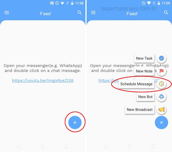 2. Para agendar o envio de uma mensagem, toque no botão (+) e selecione “Schedule Message”.