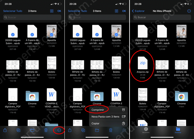 Uma maneira prática de compartilhar dezenas de arquivos e fotos é criando um arquivo ZIP, uma vez que ao compactar os arquivos, você precisa enviar apenas um arquivo ZIP em vez de vários arquivos separadamente. Além disso, ao compactar os arquivos, você ocupará menos espaço em seu iPhone.