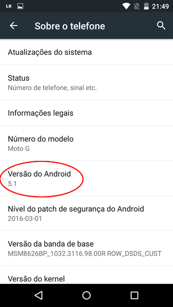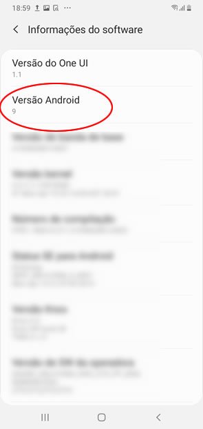 3. Na tela seguinte, localize a opção “Versão do Android”.