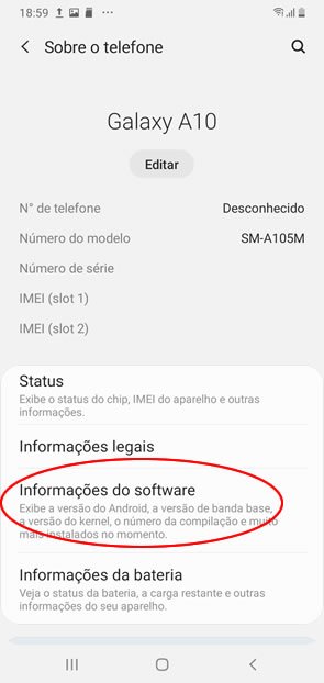 3. Na tela seguinte, toque na opção “Informações do software”.