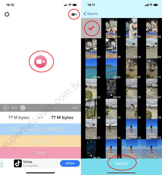 3. Toque no botão “Comprimir vídeo”.