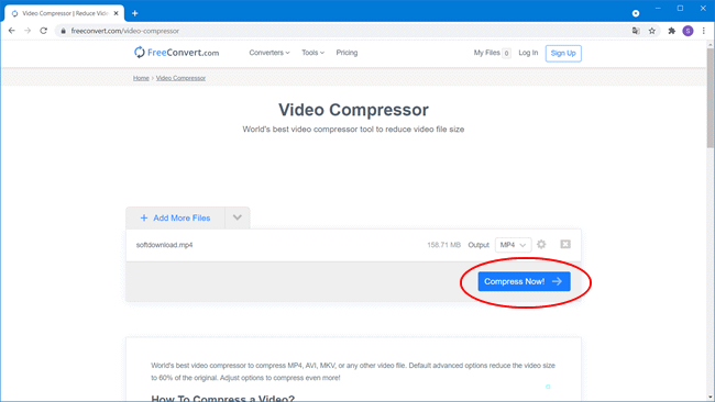 Se você não quer instalar nenhum programa em seu computador, você pode usar um compactador online. Você também poderá compactar o vídeo para 65MB se estiver usando o site no computador.