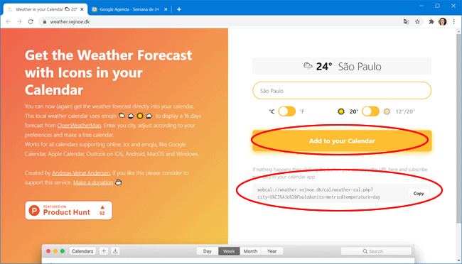 3. Clique no botão “Add to Calendar” e ele irá gerar um link. Copie o link e abra o Google Agenda.