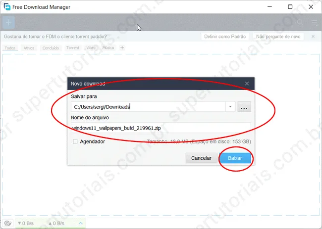 4. Selecione a pasta aonde deseja salvar o arquivo e clique em “Baixar” para iniciar o download.