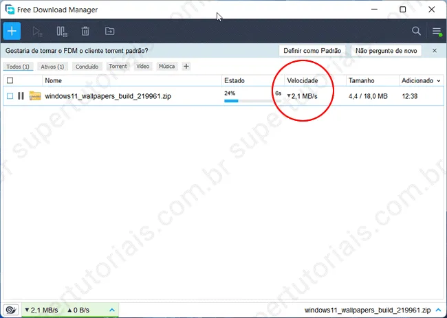 5. Uma vez feito isso o arquivo será dividido em múltiplos segmentos para acelerar o download. Você pode acompanhar a velocidade de download do arquivo no MediaFire a partir da coluna “Velocidade”.
