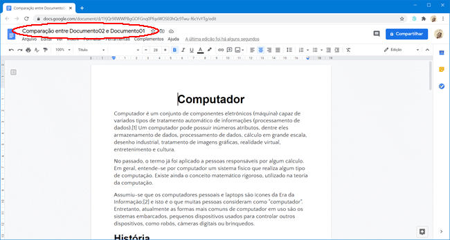 Como comparar documentos no Google Docs: