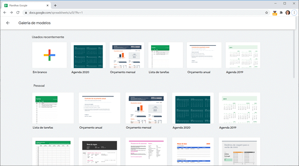 3. Selecione o modelo de agenda do ano correspodente, como por exemplo, “Agenda 2020”.