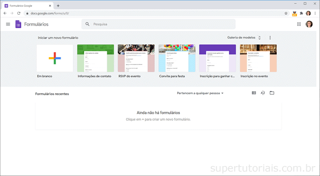 1. Para começar, acesse a página do Formulários do Google com a sua conta do Gmail.