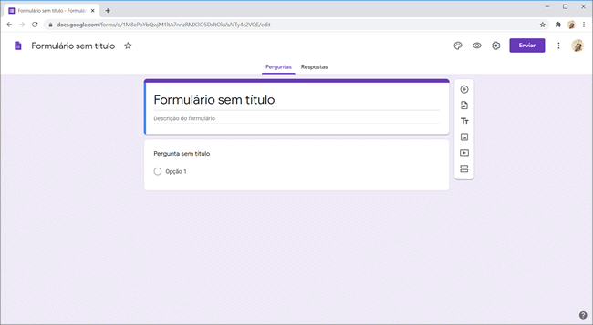 3. A primeira coisa que você precisa fazer é inserir o título do formulário. Para isso, clique no campo “Formulário sem título” e insira um nome. Você também pode inserir uma descrição abaixo do título.