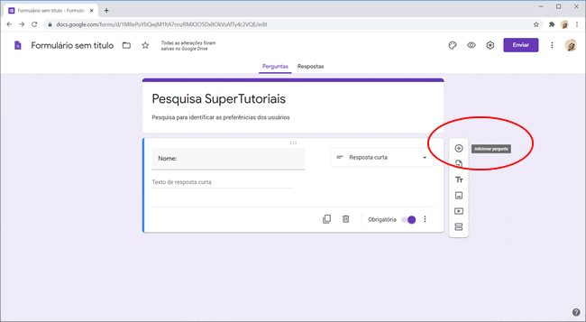 5. Em seguida, clique no botão (+) na barra lateral para adicionar uma nova pergunta.