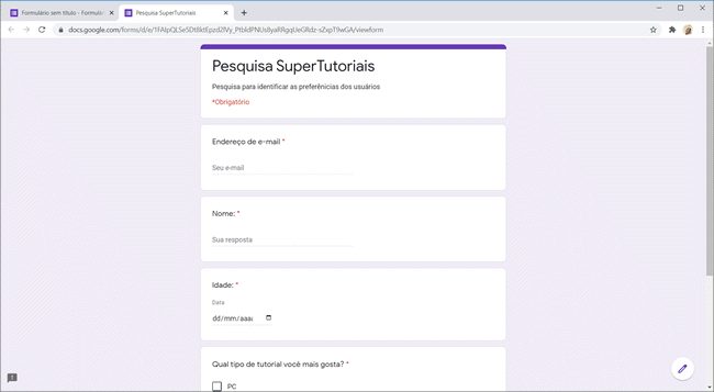 9. Por fim, você pode visualizar o formulário clicando no ícone de “olho” no menu superior. Faça um teste, responda as perguntas e envie a resposta para garantir que ele funciona conforme o esperado.