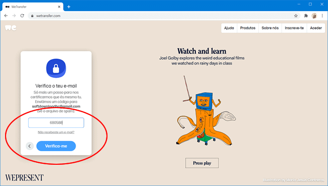5. Digite o código, clique em “Verificar-me” e ele irá iniciar a transferência do arquivo.