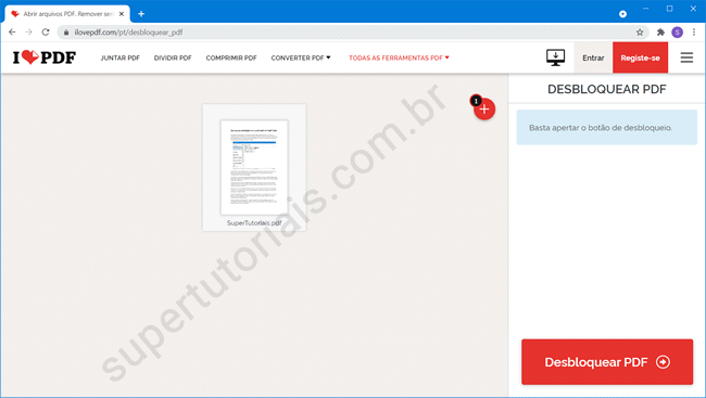 3. Uma vez adicionado o arquivo, clique em “Desbloquear PDF” para remover a proteção do PDF.