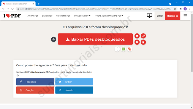 4. Aguarde o arquivo PDF ser desbloqueado e por fim, clique em “Baixar PDFs desbloqueados.”