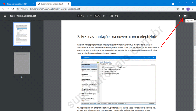 5. Uma vez feito isso, abra o arquivo PDF baixado e a opção de impressão estará disponível.