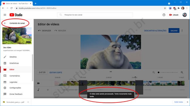 Passo 1 – Acessar o editor de vídeos do Youtube