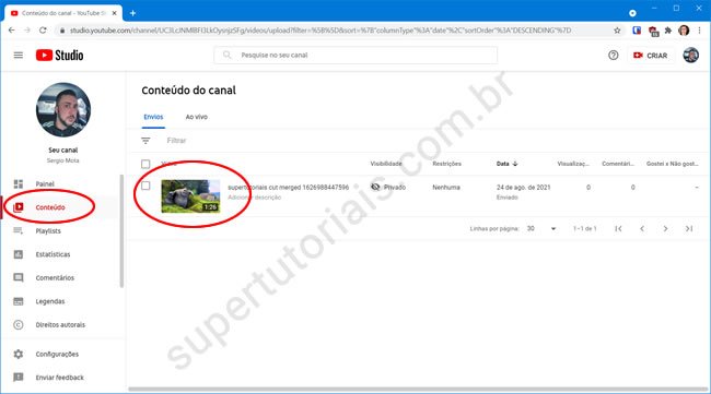 6. Aguarde o vídeo ser processado. Quando terminar, clique em “Conteúdo do canal”.