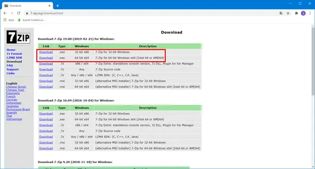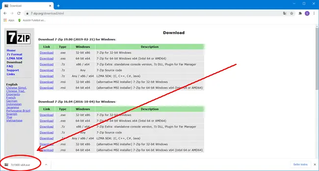 1. Baixe aqui o programa 7-Zip. O programa está disponível em versões de 32 bits e de 64 bits para Windows. Se você não sabe qual a versão do Windows em seu PC, veja a versão do Windows aqui.