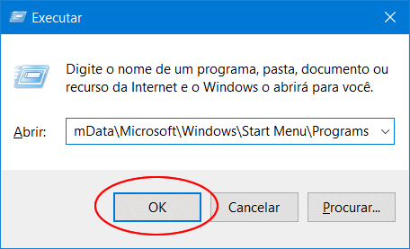 3. Pressione as teclas Windows + R para abrir o Executar, cole o caminho abaixo e clique em “OK”.