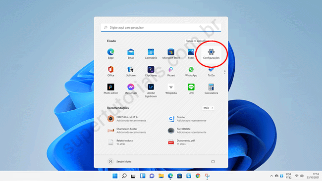 1. Abra o aplicativo Configurações a partir do Menu Iniciar ou pressione as teclas “Win+I”.