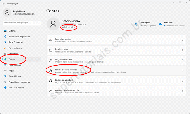 Antes de começar, é importante observar que apenas os usuários com conta de administrador podem adicionar usuários no Windows 11. Por padrão, quando você instala o Windows 11, o usuário criado é do tipo administrador, porém, você pode confirmar isso seguindo os dois primeiros passos do tutorial.