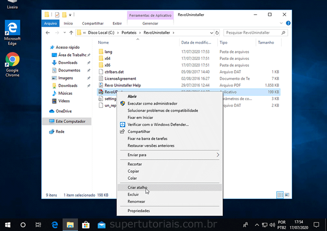 1. Para começar, acesse a pasta onde está o programa portátil, clique com o botão direito no arquivo executável do programa (.exe) e selecione a opção “Criar atalho”. Isso criará um atalho do programa.