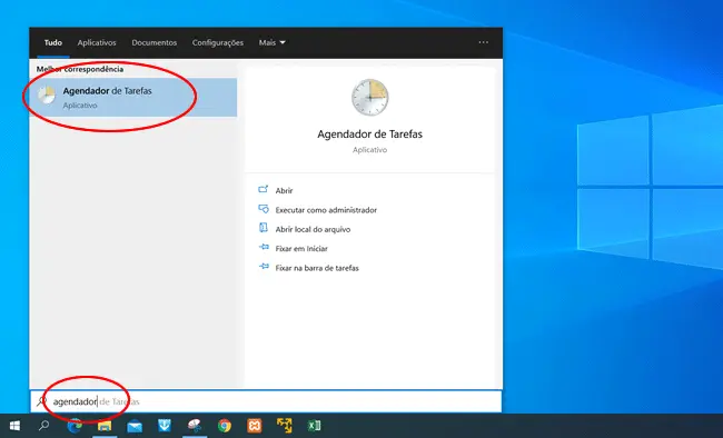 1. Clique no menu Iniciar, pesquise por agendador e abra o Agendador de Tarefas.