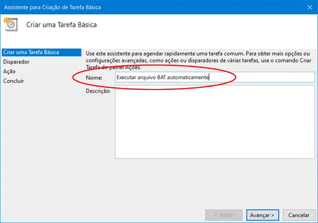 3. Digite um nome para a tarefa e clique em “Avançar”.
