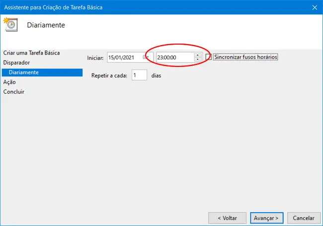 5. Dependendo da opção escolhida, ele irá solicitar que você defina o horário.