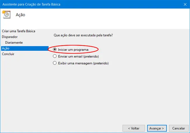 6. Na tela seguinte, marque a opção “Executar um programa”.