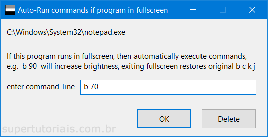 6. Agora, basta clicar em “OK” para fechar a janela de configuração. Uma vez feito isso, sempre que você abrir o programa ou a janela dele estiver em foco, o brilho será ajustado automaticamente para a porcentagem definida e ao minimizar, sair de foco ou fechar o programa, o brilho será restaurado.