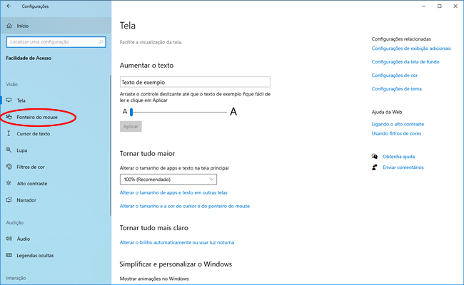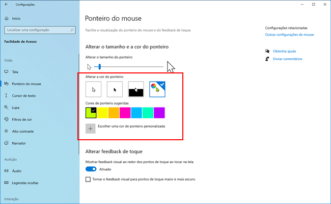 Como alterar a cor do ponteiro do mouse no Windows 10: