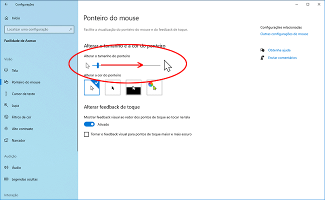 Como alterar o tamanho do ponteiro do mouse no Windows 10