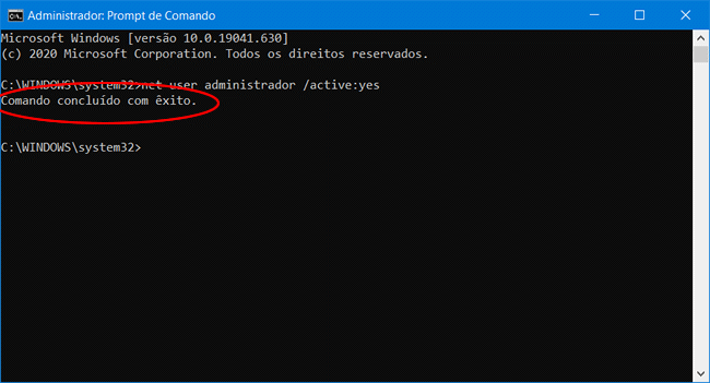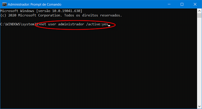 net user administrador /active:yes