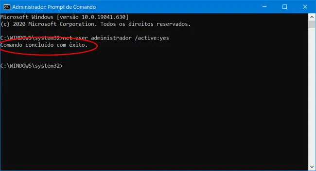 net user administrador /active:yes