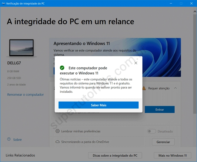 4. Por fim, execute a ferramenta PC Healt Check (Verificador de integridade do PC) e execute um novo teste clicando em “Verificar agora”, para ver se o seu computador agora pode executar o Windows 11.