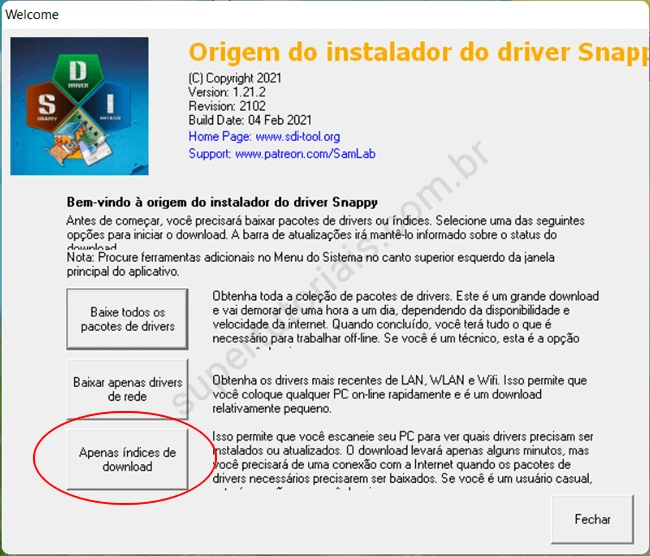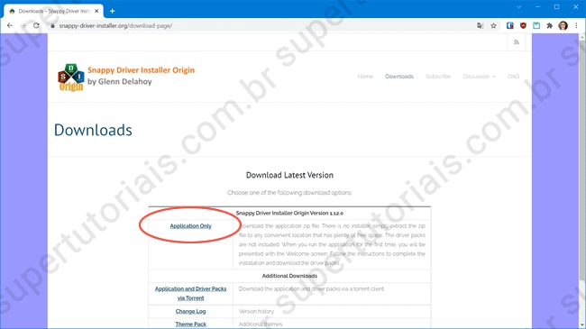 1. Acesse o site do Snappy Driver e clique no link “Application Only” para baixá-lo. Ele é compatível com o Windows XP, Windows Vista, Windows 7, Windows 8 e 8.1, Windows 10 e com Windows 11.