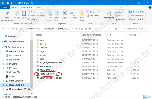 3. Abra a pasta para onde ele foi extraído e clique duas vezes no arquivo “SDIO_x64_Rxxx.exe”.
