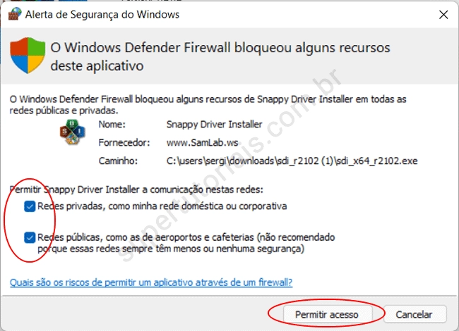 4. Se for exibida uma mensagem do firewall, marque as duas caixas e clique em “Permitir acesso”.