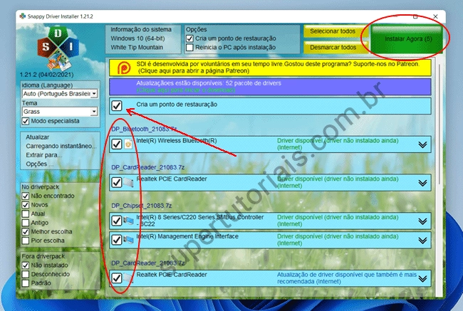 6. Uma vez terminado o download, ele exibirá a lista de drivers disponíveis para o seu PC. Marque todos os drivers de hardware que você deseja baixar e instalar e clique no botão “Instalar Agora”.