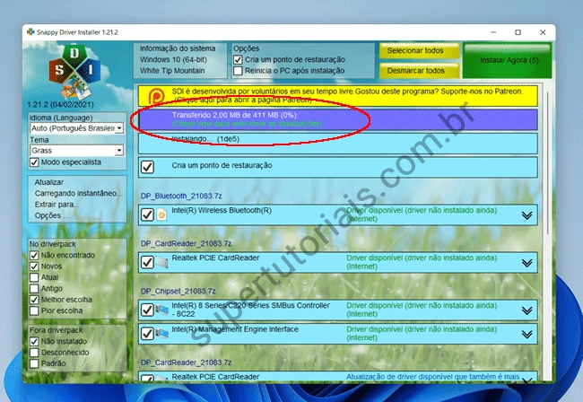 7. Pronto, agora aguarde ele iniciar o download dos arquivos e uma vez concluído o download, ele irá instalar automaticamente os drivers no PC para você, basta aguardar o processo ser concluído.