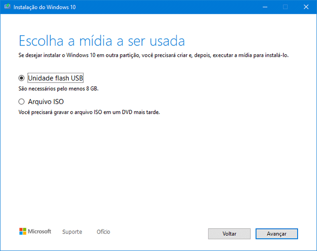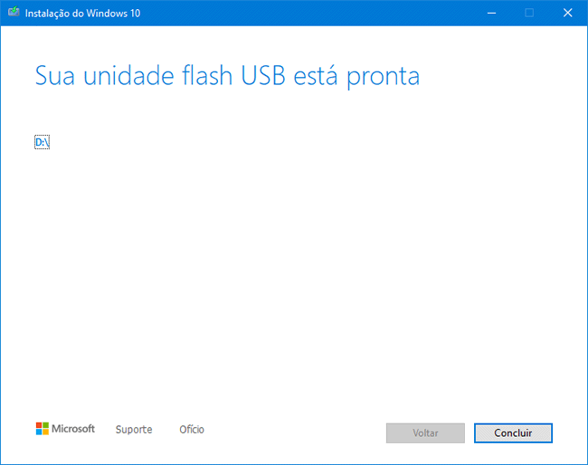10. Uma vez criada a mídia, basta usá-la para fazer a instalação do Windows 10.