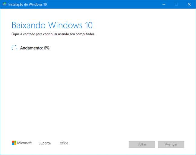 8. Agora basta esperar o download do Windows 10 ser concluído. O tempo de download pode variar de acordo com a velocidade da conexão de internet, uma vez que ele baixa cerca de 4GB de dados.