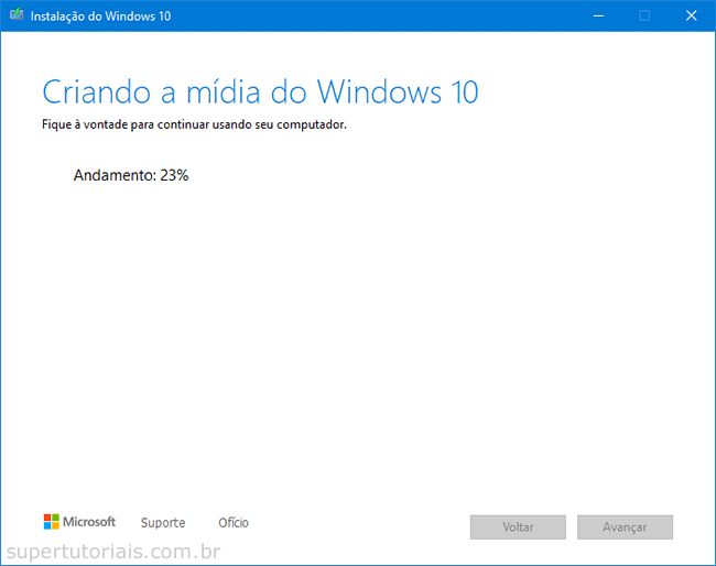 9. Assim que o download for concluído, ele iniciará a criação da mídia do Windows 10 no pendrive.