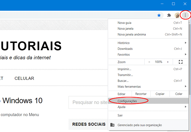 1. Clique no menu de três pontos do Chrome do lado direito superior e acesse as “Configurações”.