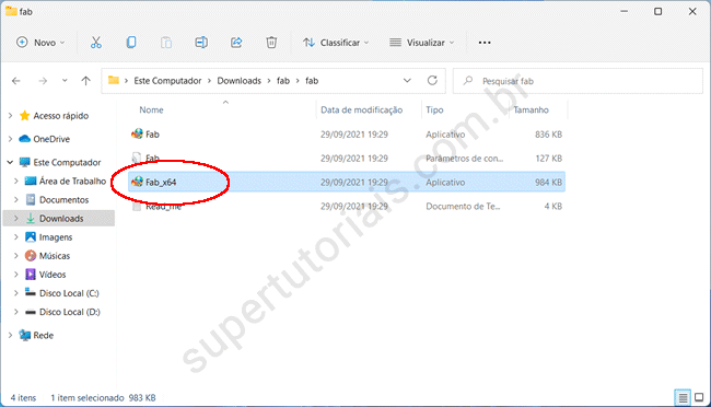 2. Extraia o conteúdo do arquivo ZIP para uma pasta e execute o arquivo “Fab_x64.exe”.