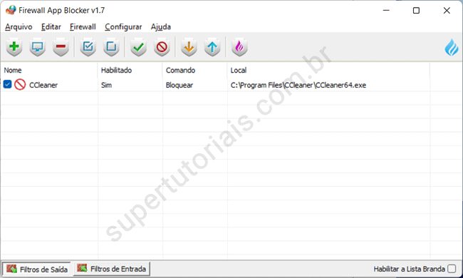 5. Uma vez feito isso, o programa bloqueado será listado no Firewall App Blocker. Para autorizar o acesso a internet novamente, desmarque a caixa do programa para desabilitar a regra de bloqueio.