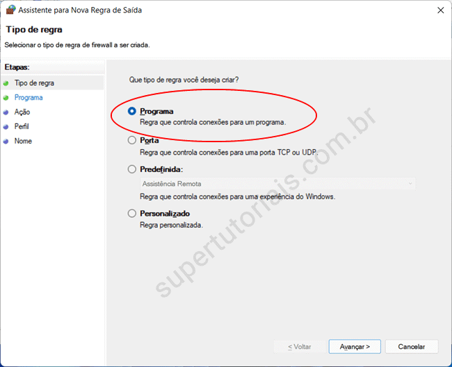 3. Marque a opção “Programa” e clique em “Avançar.”