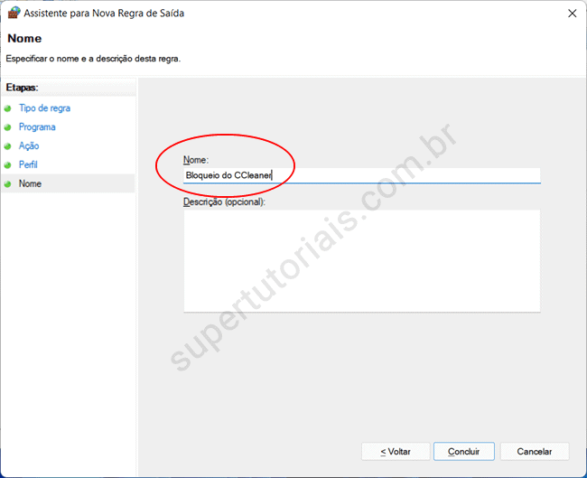 7. Digite um nome para a regra para facilitar a sua identificação e clique em “Concluir”.