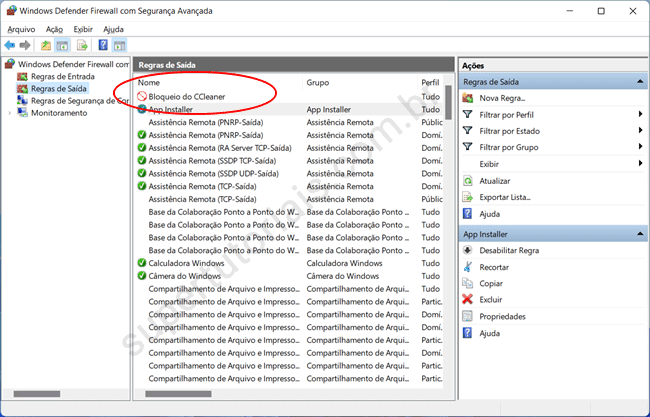 8. Uma vez feito isso, o programa não irá conseguir mais acessar a internet. Você pode verificar a nova regra que acabou de criar no topo da lista de “Regras de Saída” exibida na janela do Firewall do Windows com Segurança Avançada. Para habilitar o acesso novamente, basta deletar a regra.